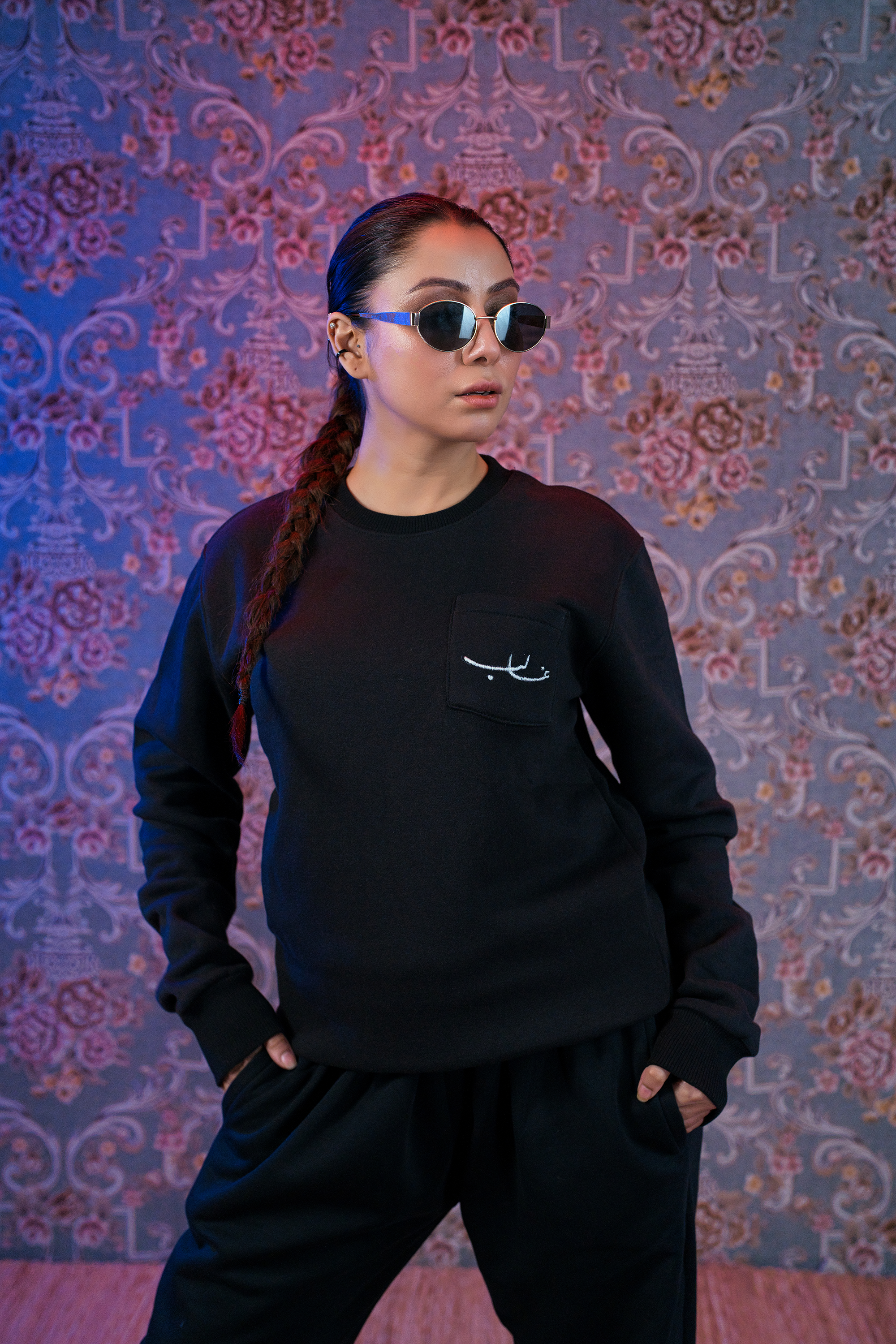 The Black Embroidery Sweatshirt and sweatpants SHAYARISM Capsule by Ghalib exudes elegance and cultural pride. This premium set features intricate Ghalib embroidery on the chest that celebrates poetic expression, crafted on a high-quality cotton-polyester blend for ultimate comfort. The sweatshirt offers a timeless crew neck design. A minimalist black palette with artistic detailing ensures a sophisticated yet versatile style.