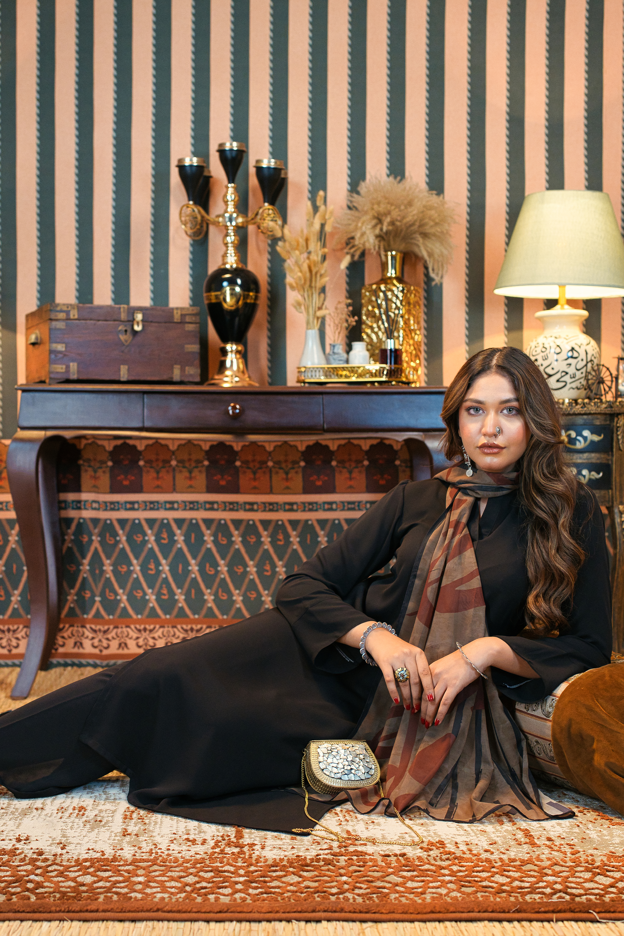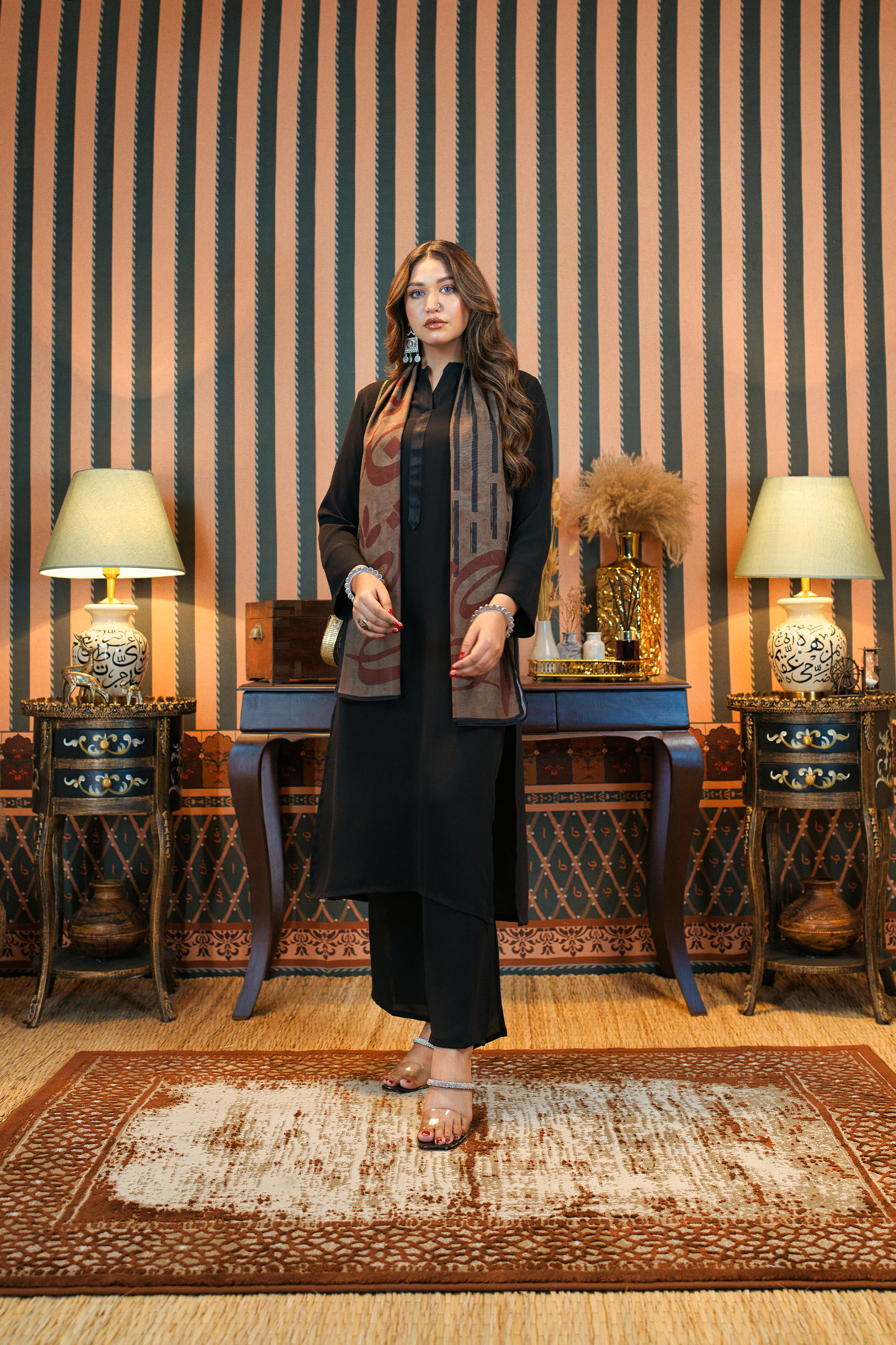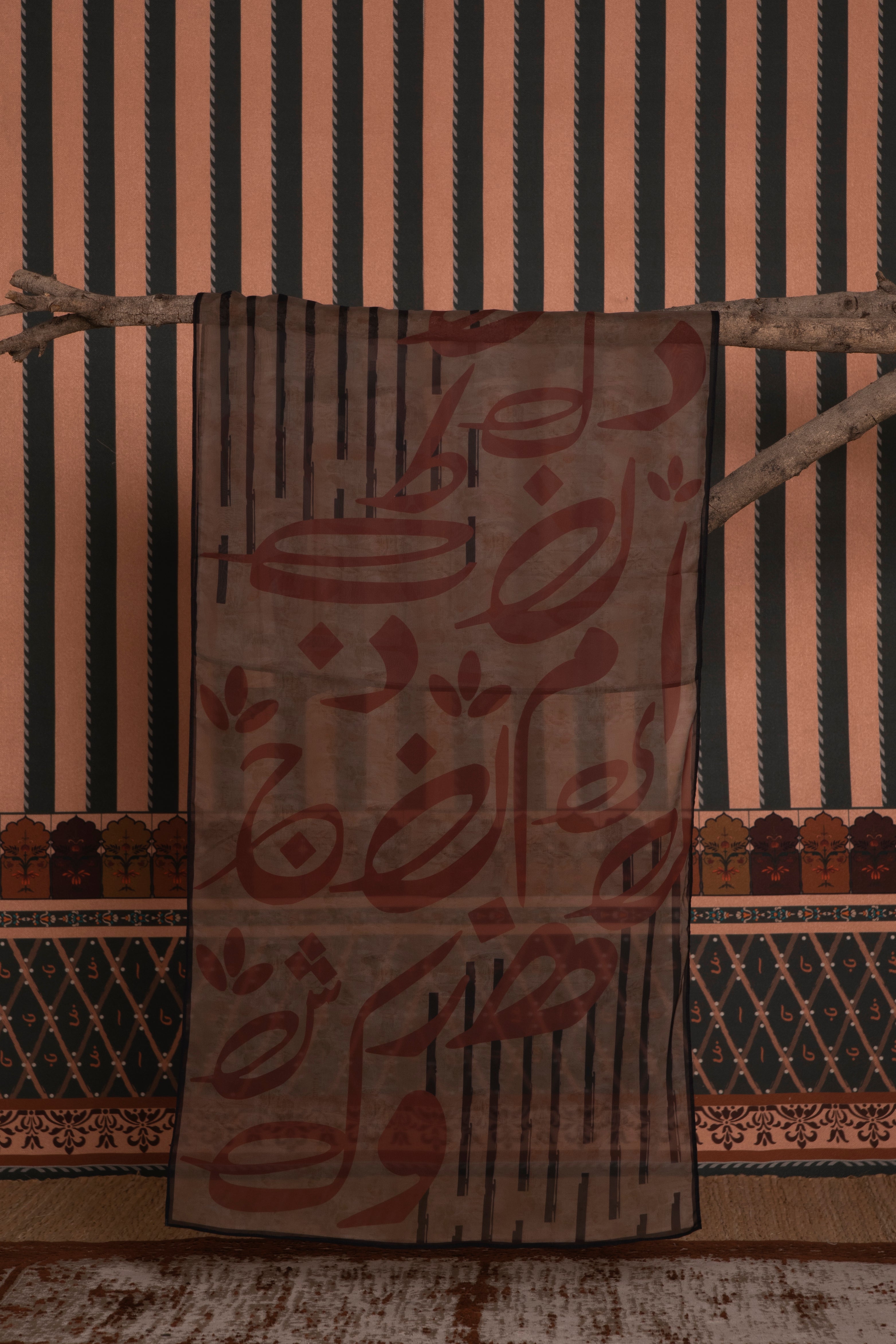 This warm brown Ghalib Haroof Stoler wraps you in the rich heritage of Mirza Ghalib's timeless poetry....